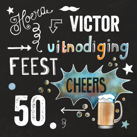 Krijtbord uitnodigingskaart met biertje voor 50e verjaardag